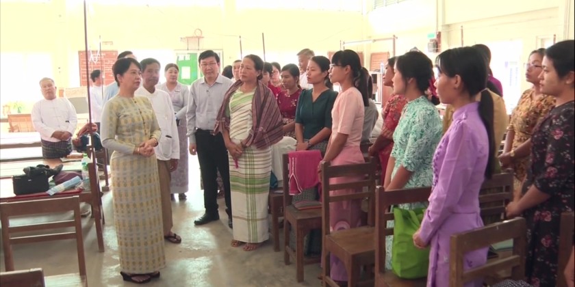 The Union Minister later proceeded to the University of Mandalay to inspect the completion of five-storey building which was damaged by Mandalay earthquake and gave necessary instructions. The Union Minister cordially met with the lecturers and staff at the temporary Banmaw University office, opened in the compound of the University of Mandalay, and made encouragement, saying the Ministry will support the needs for the development of education sector and provided cash assistance to them.