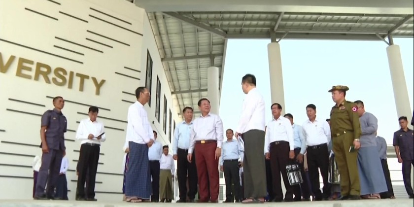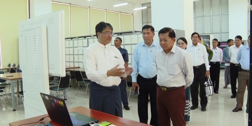 Union Minister for Science and Technology Dr. Myo Thein Kyaw then provided additional details. Upon the reports, the Prime Minister instructed continued nation-beneficial teaching and necessary measures to uphold the university’s characteristics. He then toured the university and oversaw the digital library system, learning management system, AI-based teaching, practical sessions in the K-LAB and the construction of academic support classrooms.