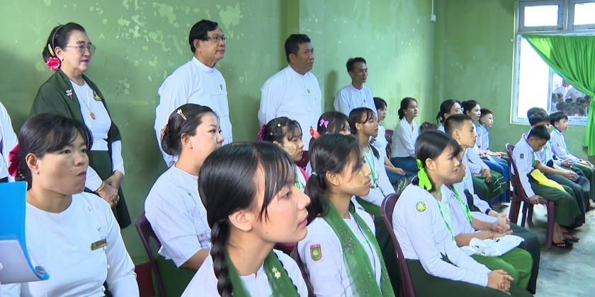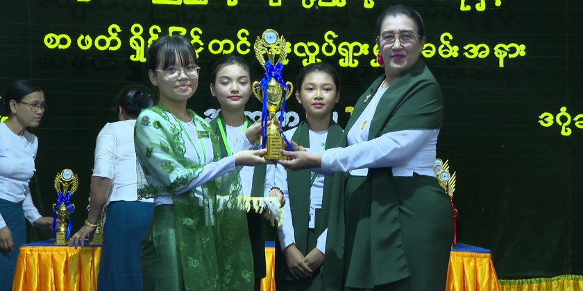 Next, the students from No (2) Basic Education High School and No (5) Basic Education High School sung the song of “Let’s preserve the literary heritage”.
