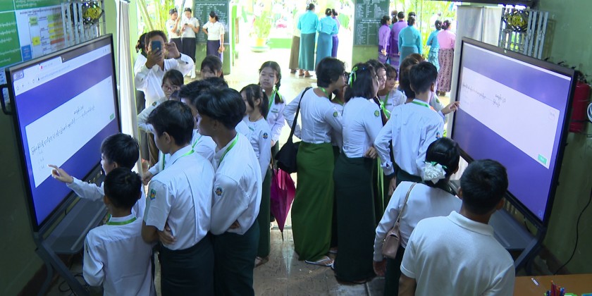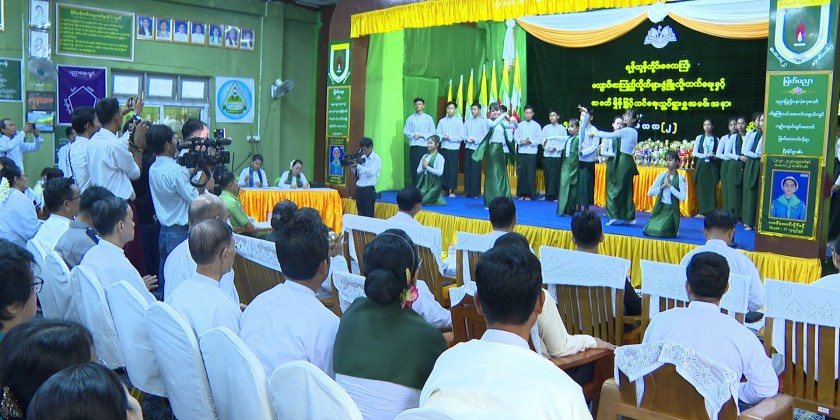 First, the Yangon Region Education Officer, Director of Yangon Region Information and Public Relations Department, Chairman of Dagon Myothit District Administration Body, Dagon Myothit District Education Officer and No (2) Basic Education High School contributor opened the ceremony by cutting the ceremonial ribbon.