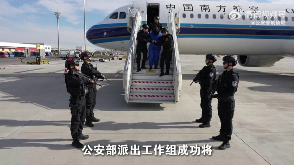 Video released by China's Ministry of Public Security on Thursday showed Chen in handcuffs as security forces lifted a black bag off his head, after he was escorted off a China Southern plane with black-clad armed guards waiting on a runway.
