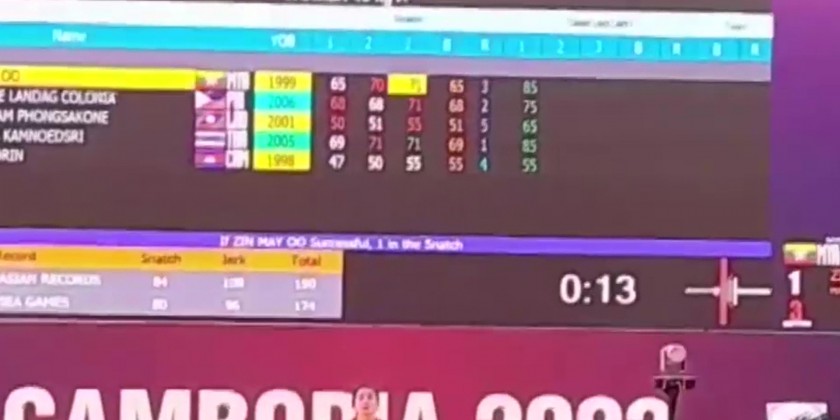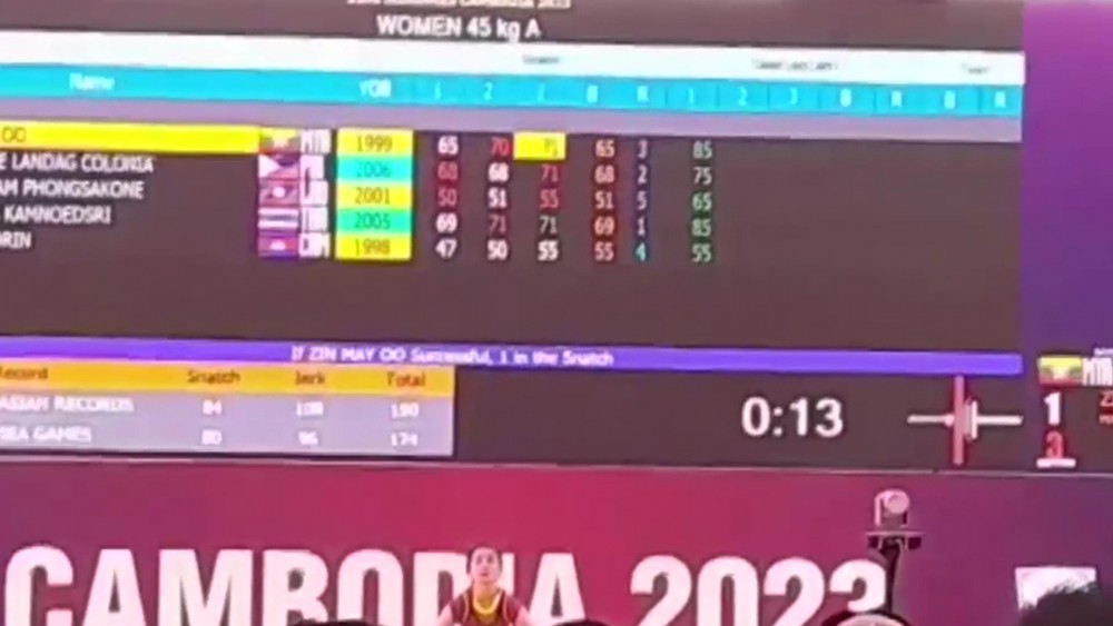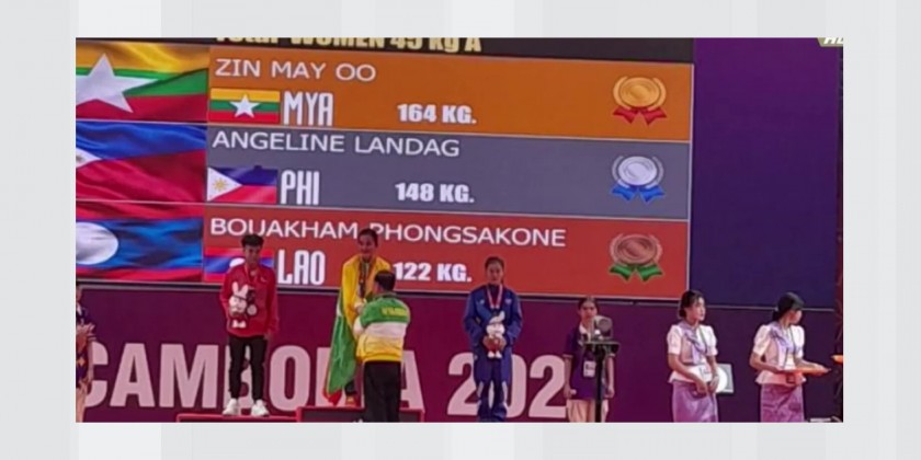Among the events, Myanmar weightlifting athlete, Zin May Oo secured gold medal at the women 45 kg Weightlifting match. She raised a total of 161 kg. This is the 16th gold medal grabbed by Myanmar sports contingent.
