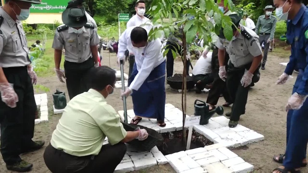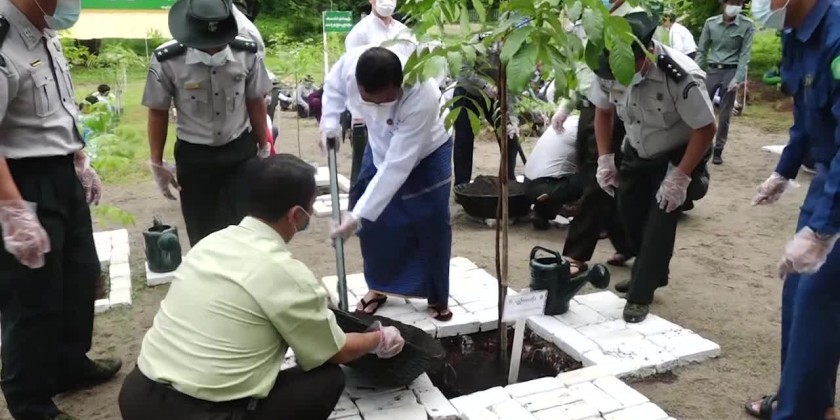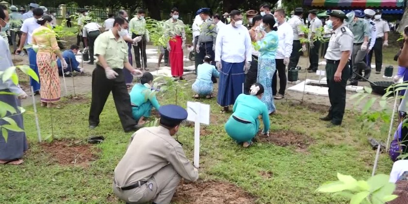 Mon State Government organized a tree planting ceremony on Saturday, aiming to substitute the forest depletion and to establish forest plantations. Chief Minister U Zaw Lin Tun and ministers planted the saplings of teak and hard woods and encouraged the participants, planting saplings in ThanLwin Garden of Mawlamyine.