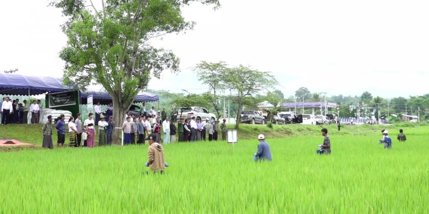 Chief Minister U Aung Zaw Aye attended the occasion, with the aim of boosting monsoon paddy yields. During the event, the Chief Minister observed the fertilization process in the thriving monsoon paddy plantations of Mong Zin Village and emphasized the proper use of fertilizers to local farmers.