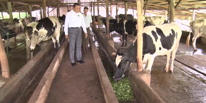 Then, the Chief Minister and party distributed fertilizers to 80 farmers. They then visited a Breeding Farm along the Keng Tung-Loi Mwe Road, where they inspected cow and poultry breeding. The Chief Minister then continued a visit to Buddha Park in Keng Tung, where they paid homage to the Abaya Rajamuni Buddha Image.