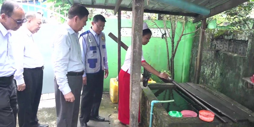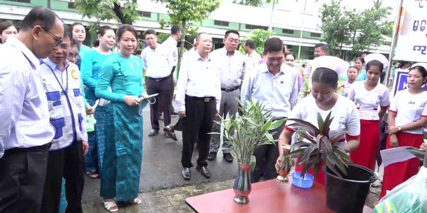 Then, the Chief Minister and party arrived at No.5 Basic Education High School and inspected collective cleaning work for better flow of water and preventative measures for dengue fever by health care workers at the school and in the ward.