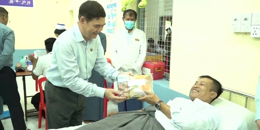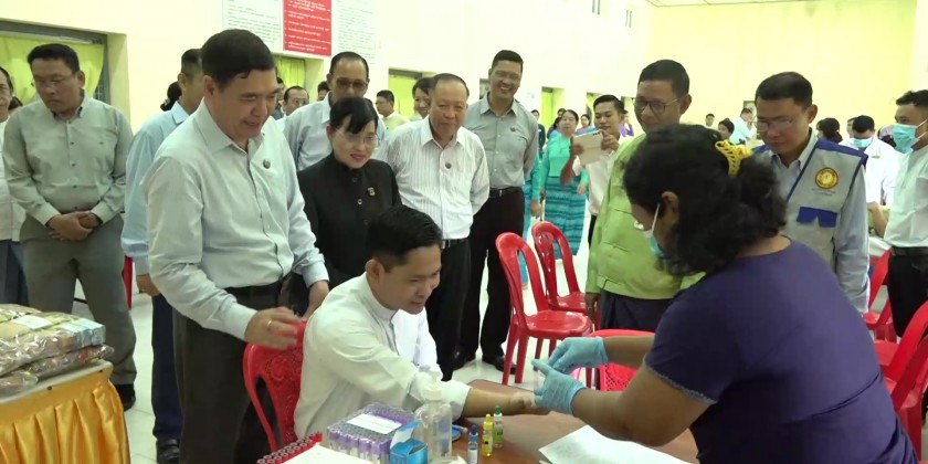 The Chief Minister and party also visited the 500-Bed General Hospital to attend the blood donation ceremony in commemoration of the Myanmar Women’s Day. There, the Chief Minister and party viewed the necessary medical check-up for blood donors and provided nutritious foods to them. The Chief Minister and party also provided foodstuffs and cash assistance to health care workers.