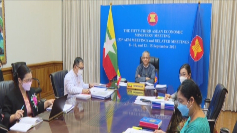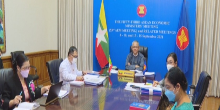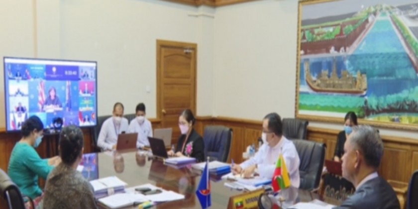 Union Minister for Investment and Foreign Economic Relations U Aung Naing Oo attended to the AEM-United States Trade Representative Consultations, 5thAEM-Hong Kong Consultations, 18th AEM-India Consultations, 17th AEM-EU Trade Commissioner Consultations and 10th AEM-Russia Consultations which were held via videoconferencing started at 7:00 am from the Ministry of Investment and Foreign Economic Relations, Nay Pyi Taw.