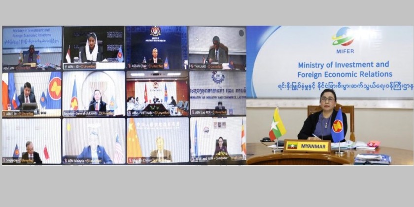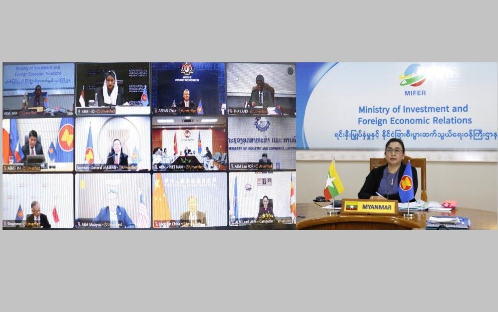 The delegation led by Dr. Wah Wah Maung, Deputy Minister for Investment and Foreign Economic Relations, attended the Special ASEAN Economic Ministers-Ministry of Commerce (AEM-MOFCOM) Consultation, the Special AEM-Closer Economic Relations (AEM-CER) Consultation and the Special AEM-Ministry of Economy, Trade and Industry (AEM-METI) Consultation via video conference on 20 May 2025.