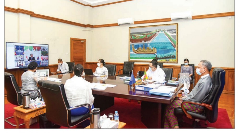 Union Minister for Investment and Foreign Economic Relations U Aung Naing Oo participated at the 53rd ASEAN Economic Ministers’ Meeting, the 35th ASEAN Free Trade Area Council Meeting, the 24th ASEAN Investment Area Council Meeting and Economic Ministers and ASEAN Business Advisory Council Consultations held via video conference at 8 AM on 8 September 2021 from the Ministry of Investment and Foreign Economic Relations.