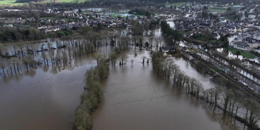 On January 21-22, the Laïta River surged past 4.4 meters, overtopping flood barriers, submerging quays and forcing evacuations. Storm Ingrid brought heavy rain and gusts of up to 140 km/h, causing widespread disruption to transportation. Aerial footage showed extensive areas submerged, with houses in towns like Malestroit surrounded by water and roads turned into rivers.