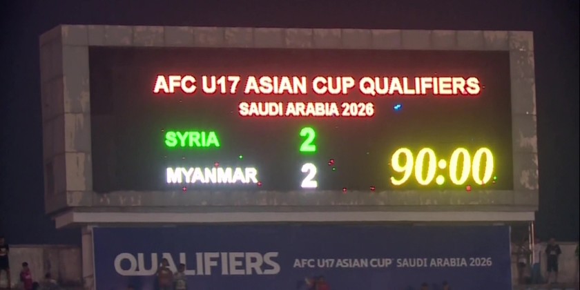 Myanmar opened the scoring through Nyi Nyi Thant in the 10th minute, and Syria equalized with a goal from Ahmad Alfaraj in the 15th minute. At the 34th minute, Ant Htoo Paing scored Myanmar’s second goal, which was later leveled by Odey Alfashtaki in the 85th minute.