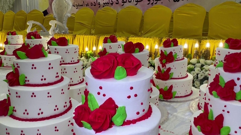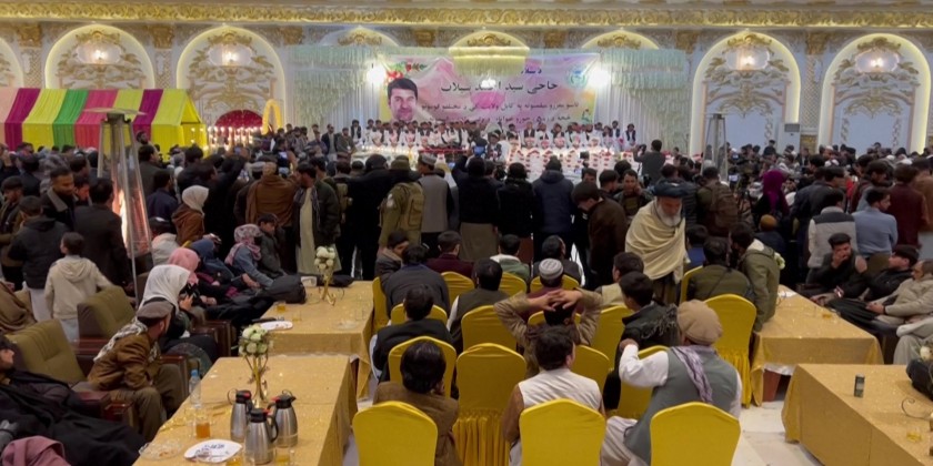 Fifty couples get married in a joint ceremony in the Afghan capital a growing practice to reduce the astronomical cost of traditional weddings in the country.