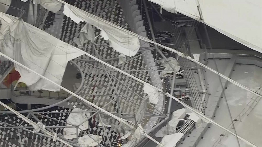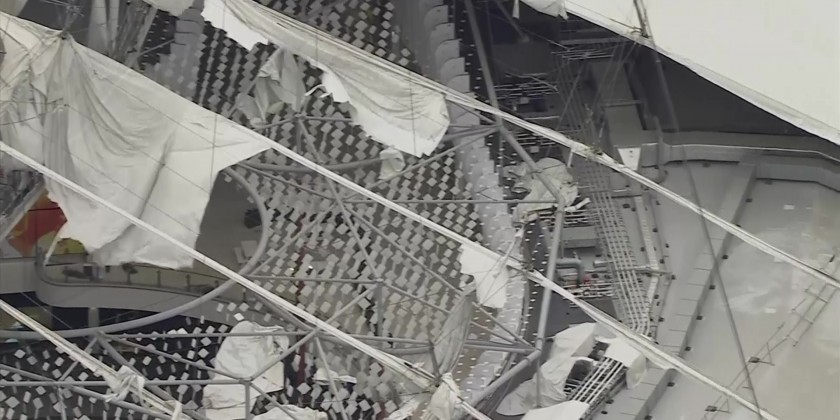 People across the U.K. dealt with the aftermath of Storm Eunice on Saturday, which ripped off sections of the roof of London's O2 Arena. The storm smashed through northern Europe on Friday, killing at least nine people as high winds felled trees, cancelled train services and ripped sections off the roof of London's O2 Arena.