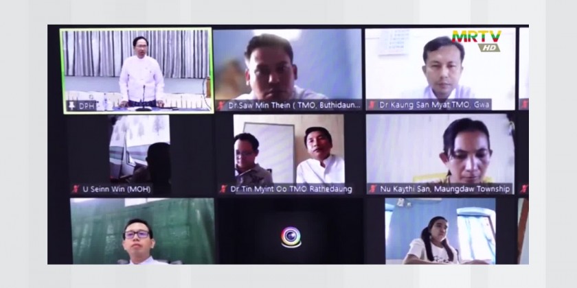 At the meeting, the Union Minister for Health Dr. Thet Khaing Win said that health care services is being provided by emergency response teams and medical teams under the Ministry since 15th May and the need to continue COVID-19 vaccination and infectious and diarrheal diseases prevention programmes, to reopen the nursing and midwifery training school in Sittwe and to carry out building repairing activities in Sittwe.