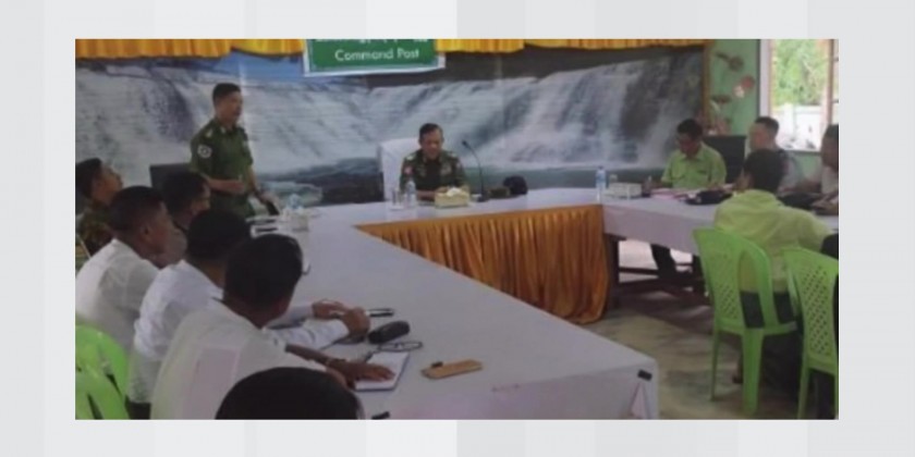 In Myebon Township, Brigadier General Kyaw Kyaw Soe held a meeting on faster distribution of 6 relief aid assisted by the Rakhine State Natural Disaster Management Committee to cyclone affected people.