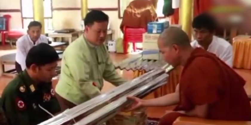 And he fulfilled the needs on reports by related officials. On June 8, Major-Gen Thaung Htike Shwe together with departmental officials visited 3 monasteries in Mrauk-U Township and donated construction materials and foodstuff.