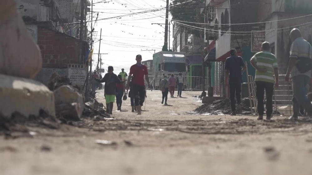 After a deadly mudslide in Venezuela, some residents of Las Tejerías are scrambling to survive in the devastated town. Heavy machinery was seen in the streets removing debris. After the mudslide, a large part of the town remains without electricity, and people have no choice but to go over 25 miles to another city to buy goods.