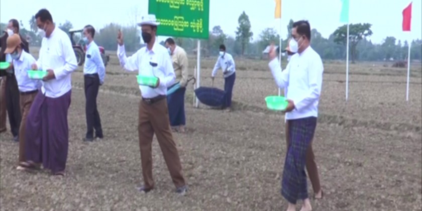 Then, they attended the ceremony of planting green manure in Waingmaw Township. The Union Minister explained to local farmers the benefits of green manure for soil development and crop nutrition.