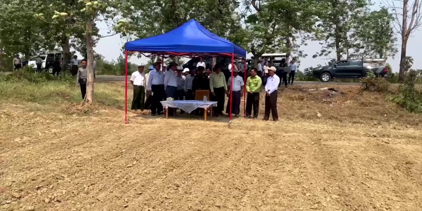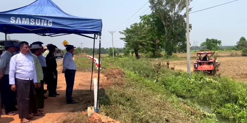 On arrival at Lin Loon Pin Village-Tract in Oak Pho Township, the Chief Minister oversaw the 10-acre summer sesame plantations, sufficient agricultural water supply with systematic irrigation system and acceleration of mechanized farming system.
