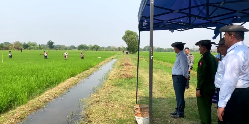 First, Chief Minister U Myo Swe Win inspected thriving 200-acre summer paddy plantation at Kyun Kone Village-Tract in Thayawady Township, met with the local farmers and coordinated requirements on double cropping acceleration and sufficient agricultural water supply.