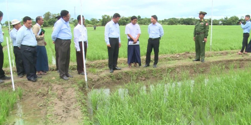 Durint his tour in Ayeyawaddy Region, the Union Minister together with Chief Minister U Tin Maung Win visited the Sar Ma Lauk Village Farmers Awareness camp in Nyaungdone Township to comfort the flood affected farmers and clarify the assistance to be provided by the government.