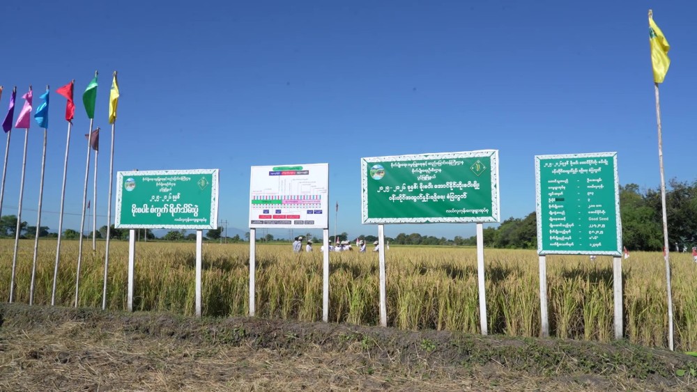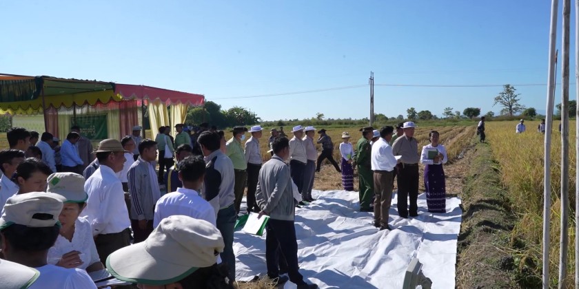 He observed the harvesting process of the 2-acre model plot and met with farmers from 11 nearby village-tracts. During the meeting, the Chief Minister encouraged farmers to work closely with relevant departments to improve yield per acre, follow correct farming methods, use inputs on time, and aim for consistent three-season cultivation to increase income.