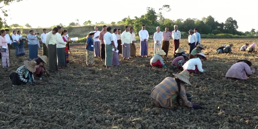 Union Minister for Cooperatives and Rural Development U Hla Moe inspected the trial cultivation of oil crop sunflower on 15 acres land owned by Shwe Wa Htun (2) Agriculture Cooperatives Limited in Yone Taw Village of Lewe Township which is jointly implemented with Russian Federation Roscongress Investment Fund on 19th December.