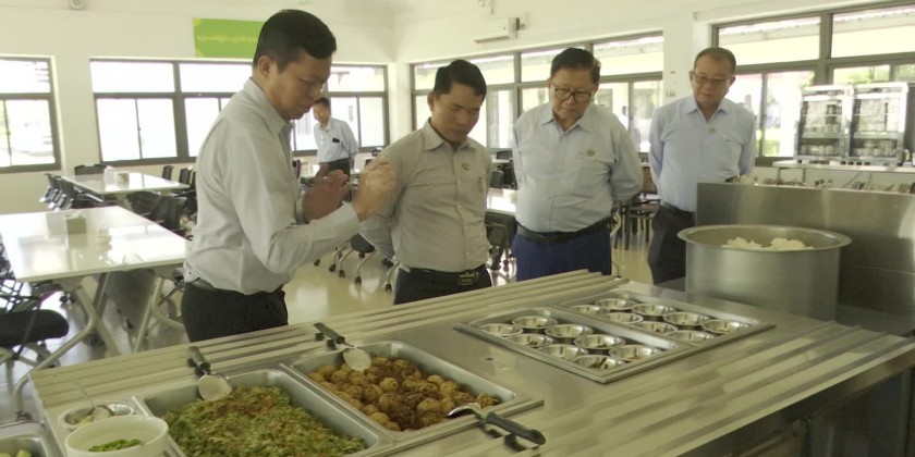 Next, the Union Minister and party visited the Pyinmana No. 2 Sugar Mill to inspect sand deposits left by receding floodwaters and ongoing renovations. The Union Minister instructed factory officials to explore measures to use flood-damaged sugar in fertilizer production.