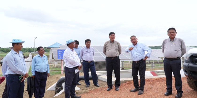 Magway Region Chief Minister U Tint Lwin, along with regional officials, visited the solar-powered irrigation project in Myichaungye Village on July 29.