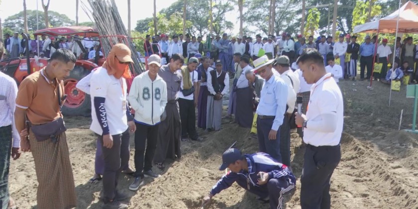 Visitors observed with keen interest live demonstrations of the use of agricultural machinery as well as practical demonstrations of crop cultivation. The study groups were provided with explanations and demonstrations by the Union Minister for Agriculture, Livestock and Irrigation, U Min Naung, deputy ministers, departmental officials, and responsible personnel from private exhibition booths.