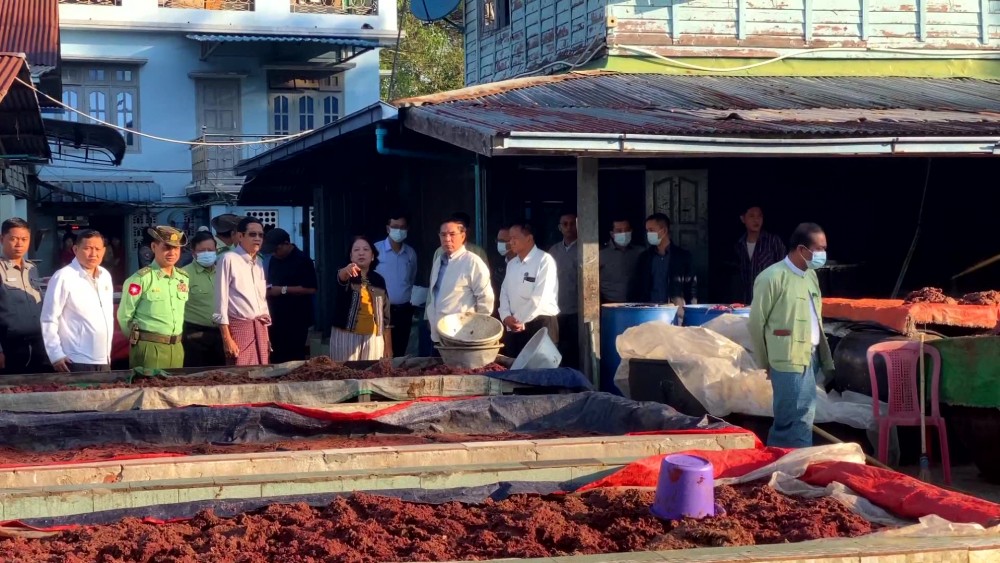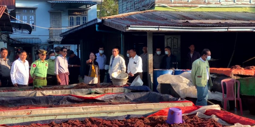 First, the Chief Minister viewed the various Jams production industry in Kyarnikan ward, poultry farm in Taung Phoe Khaung Village, May Myo Flower plantation in Kyuntanyoe Village and TBL-9 black gram plantation in Phar Aint Village in Shwe Taung Township and gave necessary instructions and suggestions.