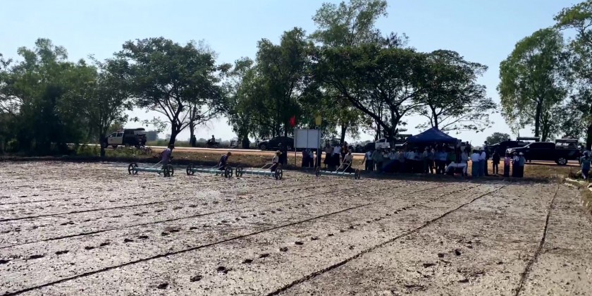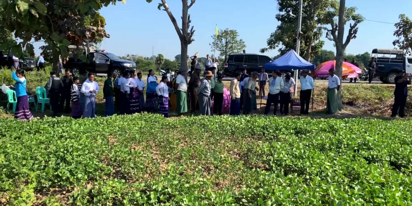 Afterward, the Chief Minister U Myo Swe Win inspected demonstration of Viet Nam rice variety summer paddy growing with seeder and a paddy field which is double rice growing in a monsoon season and gave instructions to the responsible officials.