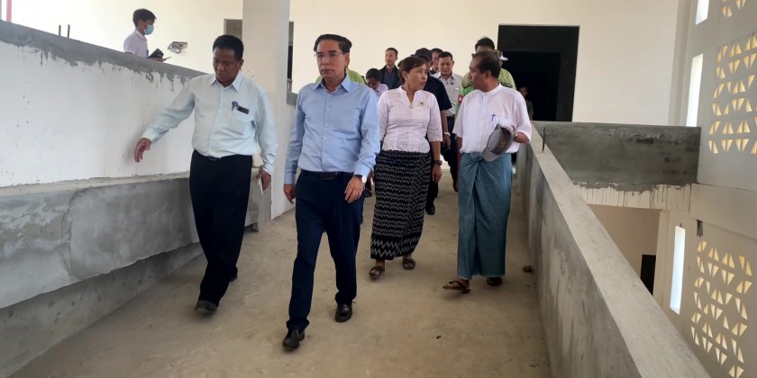 The Chief Minister and party inspected the construction work of two-storey building in Nattalin Township Hospital and the development of 66.62 acres of farmland owned by 10 farmers in mechanized farming system and gave necessary instructions to the responsible officials.