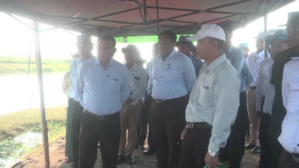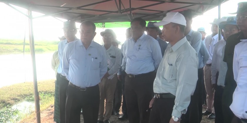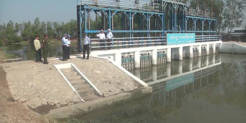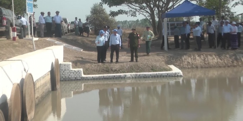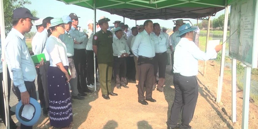 Deputy Minister for Agriculture, Livestock and Irrigation U Bo Bo Kyaw together with minister for Security and Boder Affairs inspected Kyon Ka Don field, Kyet Pha Myway Zaung embankment for protecting inflow of salty water and construction sites of irrigation gateways that can bring fresh water in Pyapon township on 9th of May and instructed the necessaries to the officials.
