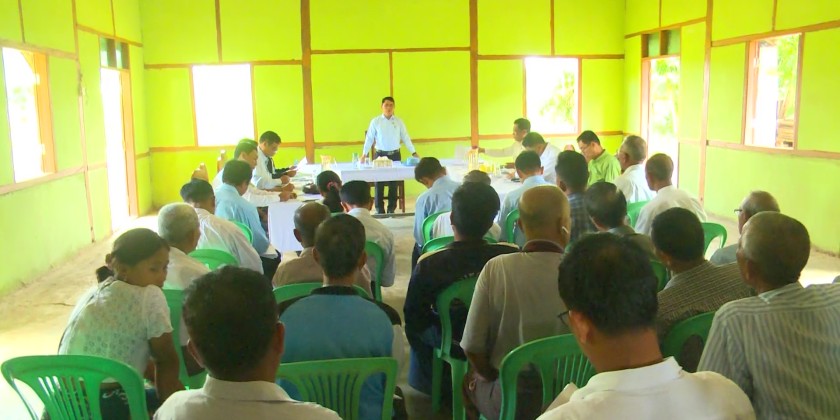 Then, the Directors General presented the technical issues to be abided by the respective sectors and the Union Minister coordinated the needs. Later, the Union Minister arrived at LePhyu Dam where he instructed for implementation of dredging works with the use of regional government fund and arrangement for construction new dam if needed. He also observed the water inflow of KyeeNiKan and supplying irrigated water to the catchment area.