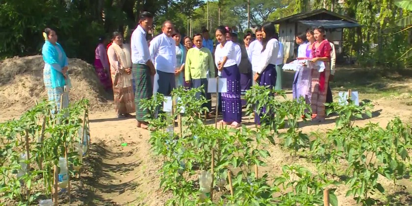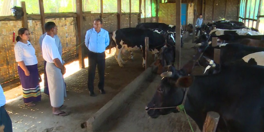 In addition, the honorary prizes were presented to the outstanding students. After the ceremony, the Deputy Minister toured around the crop plantations and research farms and provided the vegetable seeds. The Deputy Minister and party later visited the private dairy farming business located in Sayar San Myothit Ward and the mung bean plantation in UtoKanyin Pin Village in Min Hla Township.