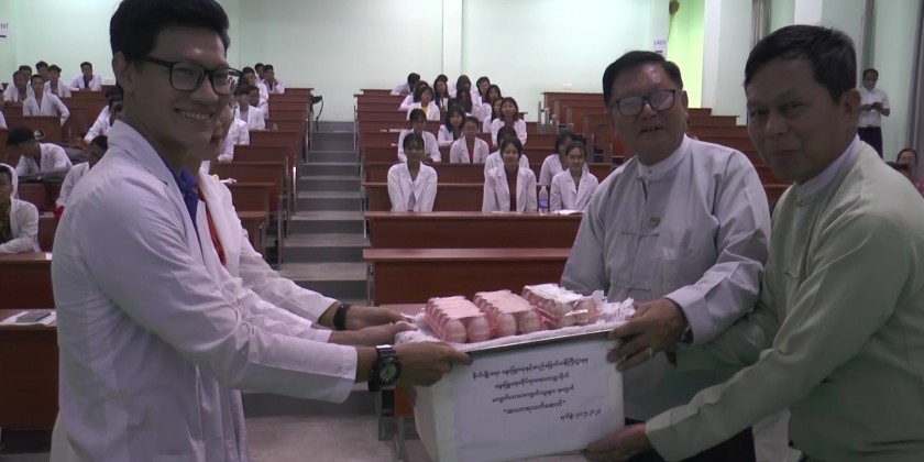 Then, the deputy Minister and officials inspected the classrooms of the universities and provided foodstuff for the students. The 2023-2024 Academic Year classes of the Yezin Agricultural University have been opened since 22nd May and there are a total of 1,342 students including postgraduate students are attending the university. And a total of 689 students are attending the University of Veterinary Science, Yezin