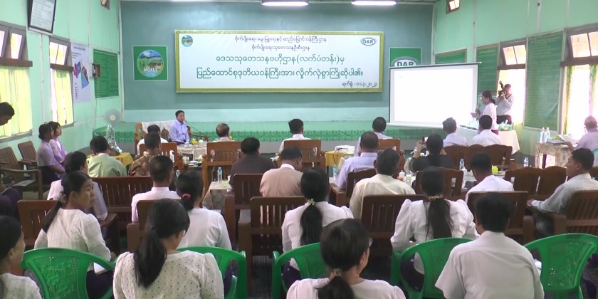 Deputy Minister for Agriculture, Livestock and Irrigation Dr. Tin Htut met with the local farmers in Gyo Gone village tract of Shwe Taung Township in Bago region yesterday.