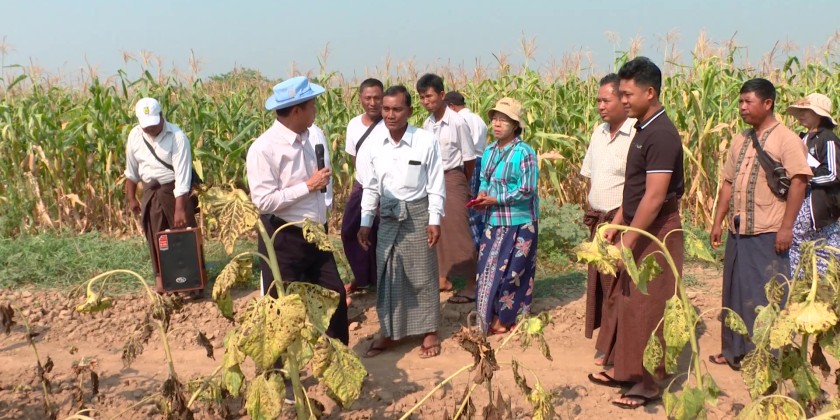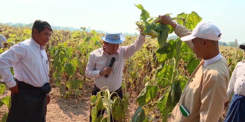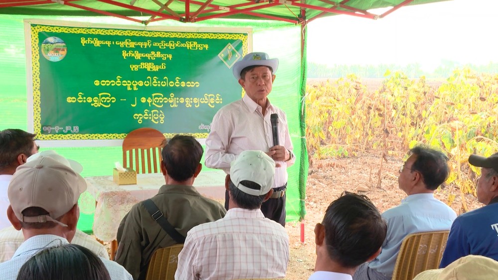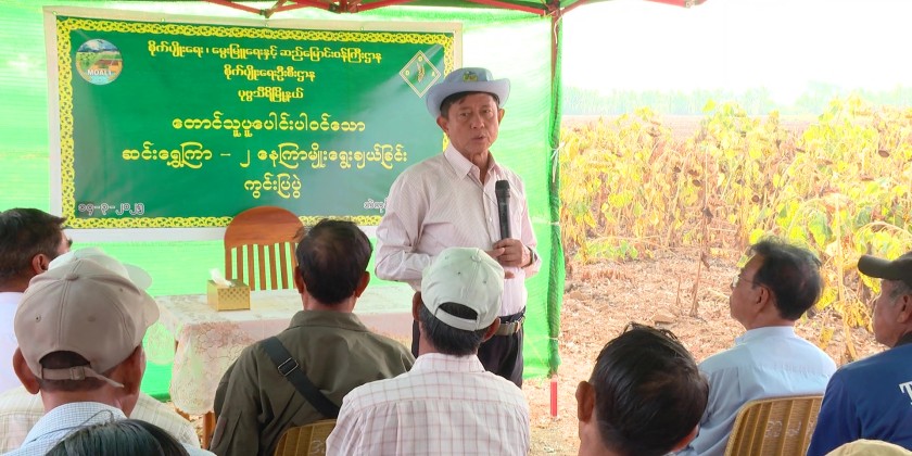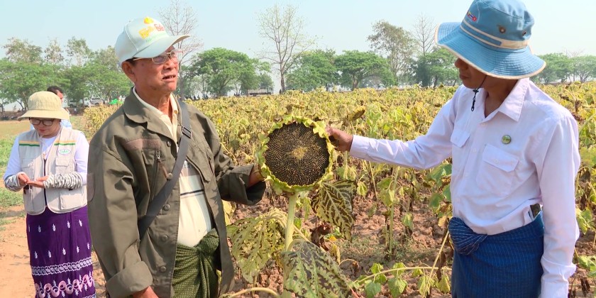 Deputy Minister for Agriculture, Livestock and Irrigation Dr. Tin Htut attended a demonstration field of Sin Shwe Kya-2 sunflower variety at Bae Kone Model Planting Field in PobbaThiri Township of Nay Pyi Taw Union Territory. During a meeting with local farmers, the Deputy Minister said sunflower is a crop that can indicate whether the agricultural ecosystem is good or bad. It is also a crop that can restore damaged ecosystems.