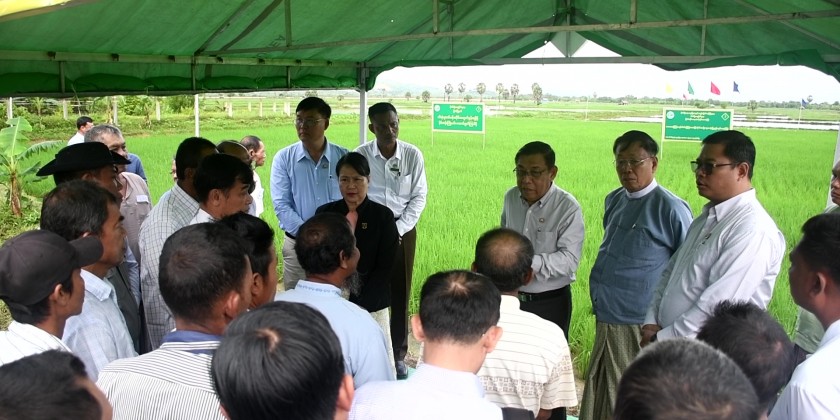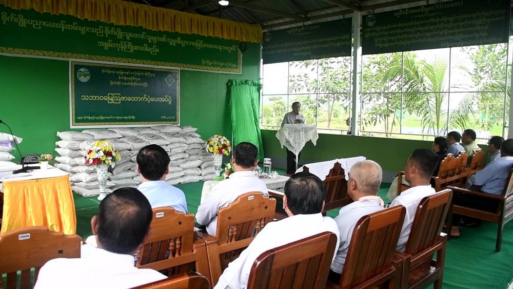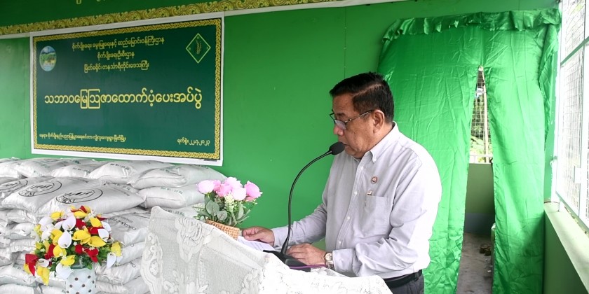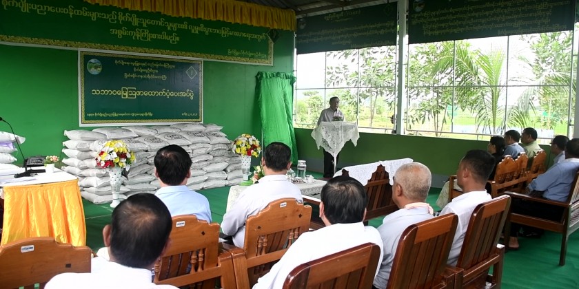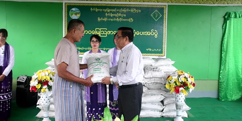 After that, the Chief Minister and officials presented fertilizer bags to farmer representatives from three village-tracts. An informative demonstration on the balanced use of natural and chemical fertilizers, along with the process of creating natural fertilizer from animal waste, was also conducted.