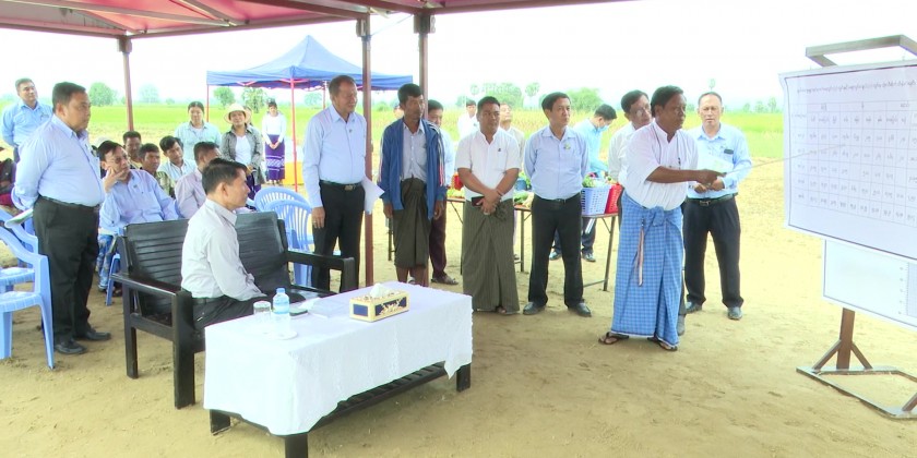 Union Minister for Agriculture, Livestock and Irrigation U Min Naung accompanied by Deputy Minister U Bo Bo Kyaw and departmental officials made an inspection tour in Tatkone Township on November 18.