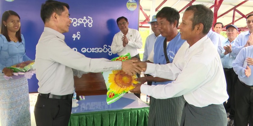 Then, the Union Minister and party inspected supplying agricultural water by extracting underground water in ShoukKone Village. Then, the Union Minister and the Deputy Minister provided Yezin hybrid sunflower seeds to Water Users Group and sunflower growers.