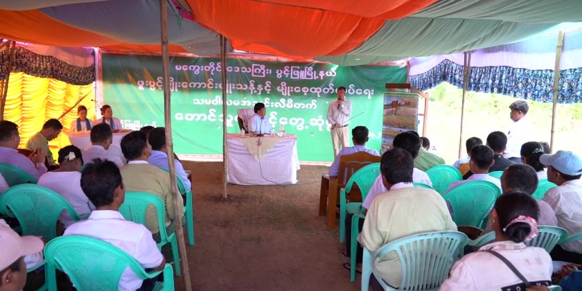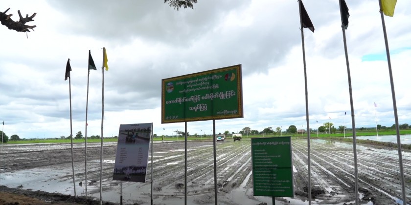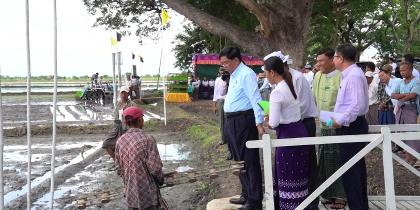 To encourage the farmers and growers to be able to use the agricultural techniques systematically and to reduce the agricultural input cost, demonstration of the sowing paddy seeds by using (10 Rows) Seeder was conducted under the supervision of No. 46 Agricultural Mechanization Department in plot No. 910 of monsoon paddy plantation in Kanthargyi  Village, Pwint Phyu Township in Magway Region with the attendance of the Magway Region Chief Minister U Tint Lwin.