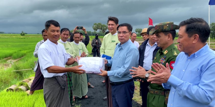 There, he also provided fruit and vegetable seeds for the farmers. Afterwards, the Chief Minister and party looked into the Monsoon Paddy model plot in Pyinmalwin Village-Tract.