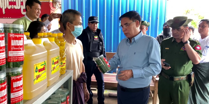 Afterwards, the State Chief Minister and party viewed around the work processes at the Pickled Fish and Peanut oil production factory at Kyaungsu ward. There, he called for efforts to increase safe local production and get FDA approval, not to use chemicals, upgrade the packaging system and to import to foreign markets and coordinated the needs.