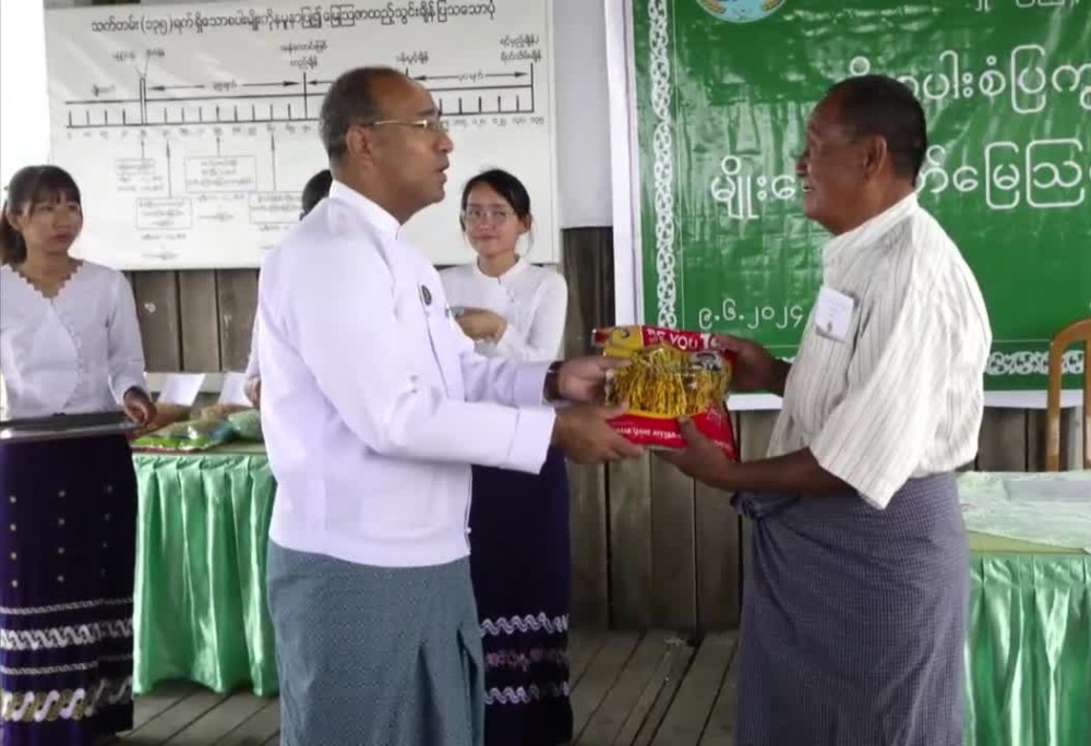 Shan State Chief Minister U Aung Aung and officials attended the rice seed and fertilizer provision ceremony in Kyawt MaungNge Village of Nyaungshwe Township.
