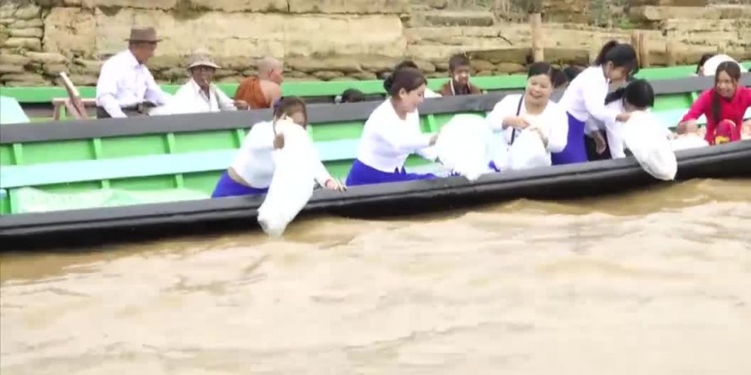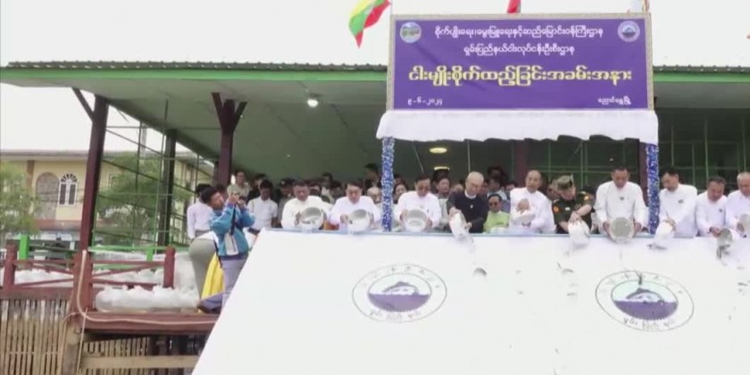 During the ceremony, at the briefing hall, the Chief Minister urged farmers to cultivate according to the technique shared by the Department of Agriculture to achieve a high yield of rice. And, the Chief Minister and officials provided the rice seed and fertilizer to the farmers. Also, at the Inle Lake, for preservation of fish resources and self-sufficiency in fish consumption in the Region, the Chief Minister and officials planted fish into the lake.