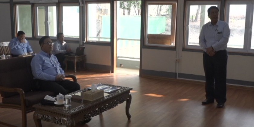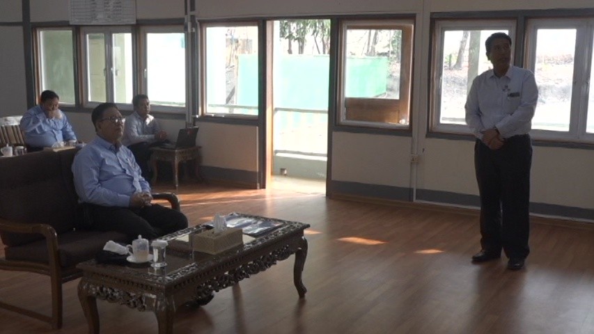 Deputy Minister for Agriculture, Livestock and Irrigation Dr. Aung Gyi and departmental officials inspected the establishment of crops and forest plantations in Chaung Ma Ngel dam area in Lewei Township under the Agroecological Project.