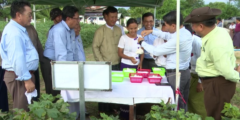 Next, the Union Minister oversaw cultivation of sunflower and cotton at the Chaung Ma Gyi Purebred Farm and the Sibin Farm in Pyawbwe Township and the experimental cultivation of cotton varieties from Uzbekistan.